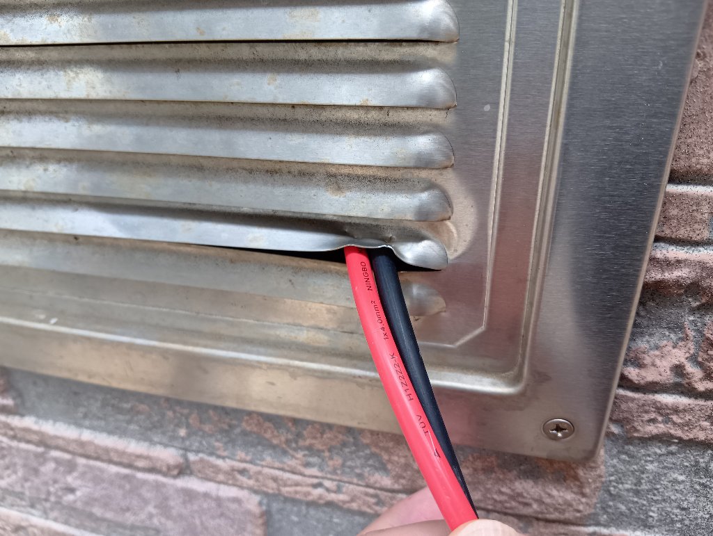 次善の策として、角形ガラリを、ちょっとだけこじ開けてケーブルを通します。