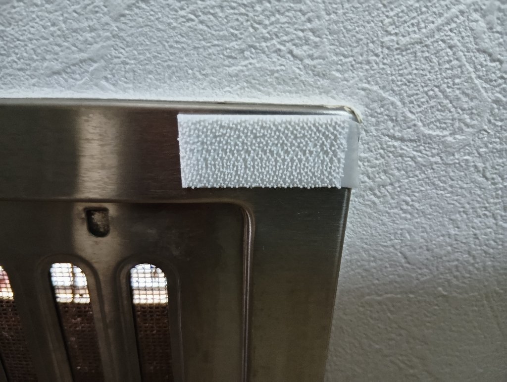 家の内側のレジスターですが、ケーブルが通る程度にメッシュに穴を開けました。