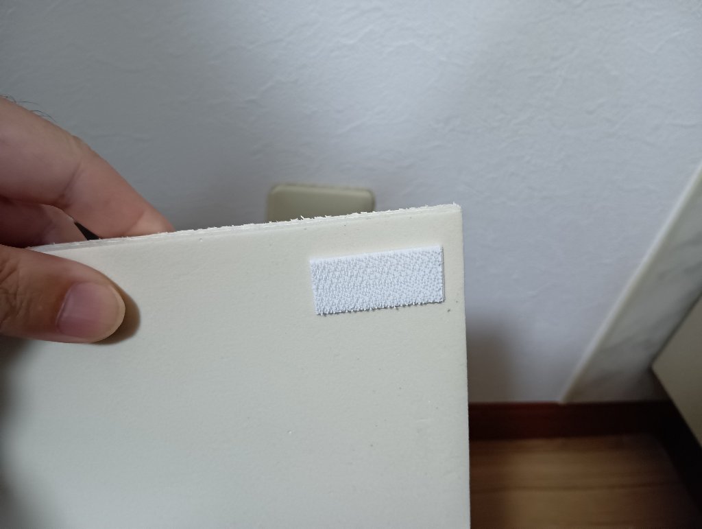 一枚余っていたパズルマットを切って、マジックテープをつけて着脱可能にしておきます。